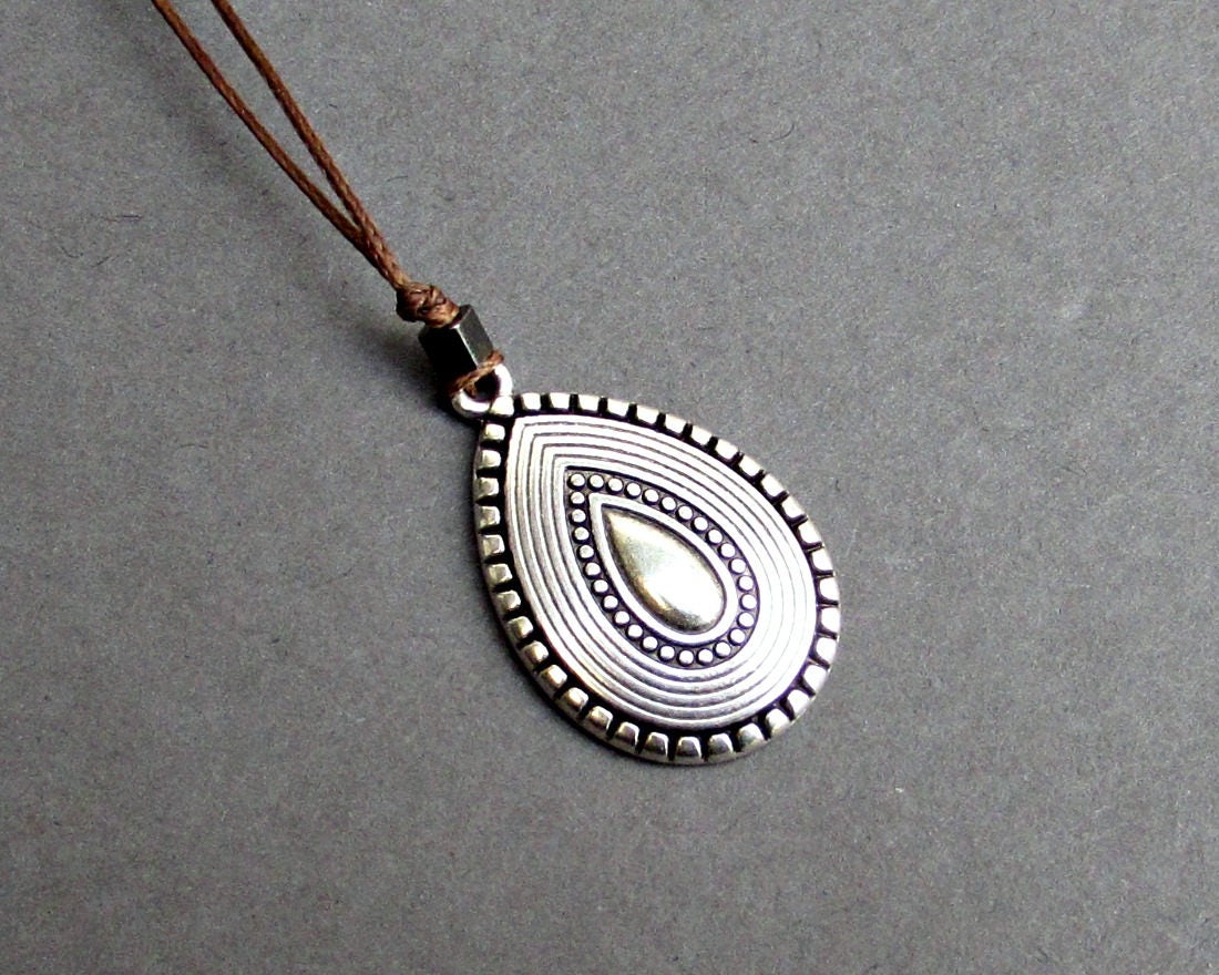 Ανδρικό κολιέ φτιαγμένο από βαμβακερό κορδόνι και επάργυρο κράμα ψευδαργύρου.