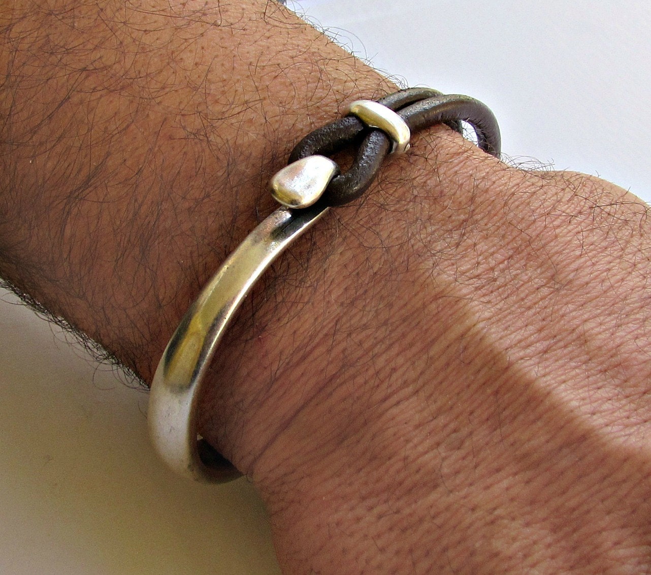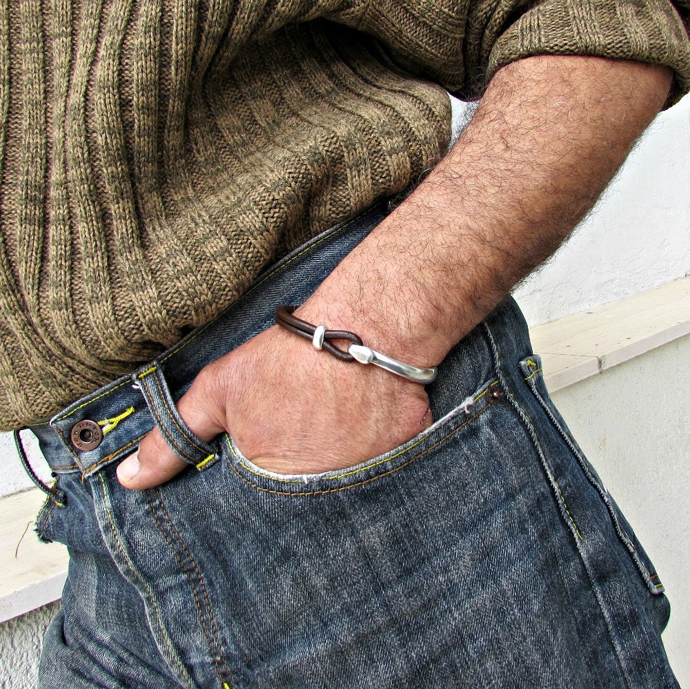 Ανδρικό δερμάτινο βραχιόλι γάντζος ασημένιο 925