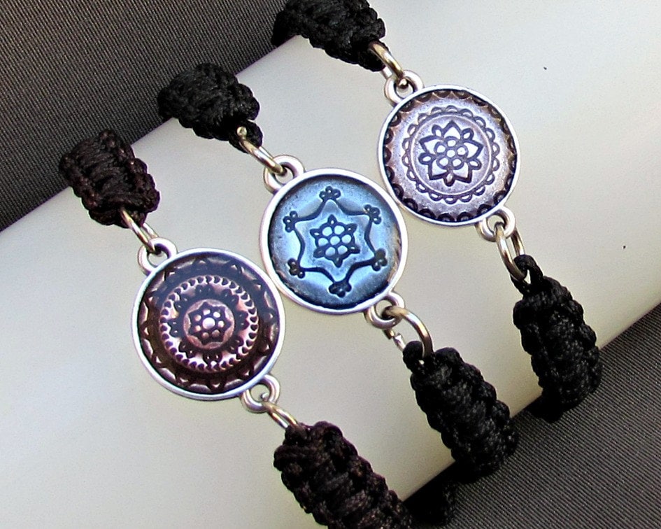Βραχιόλι Μακραμέ φτιαγμένο από βαμβακερό κορδόνι και επάργυρο κράμα ψευδαργύρου.
