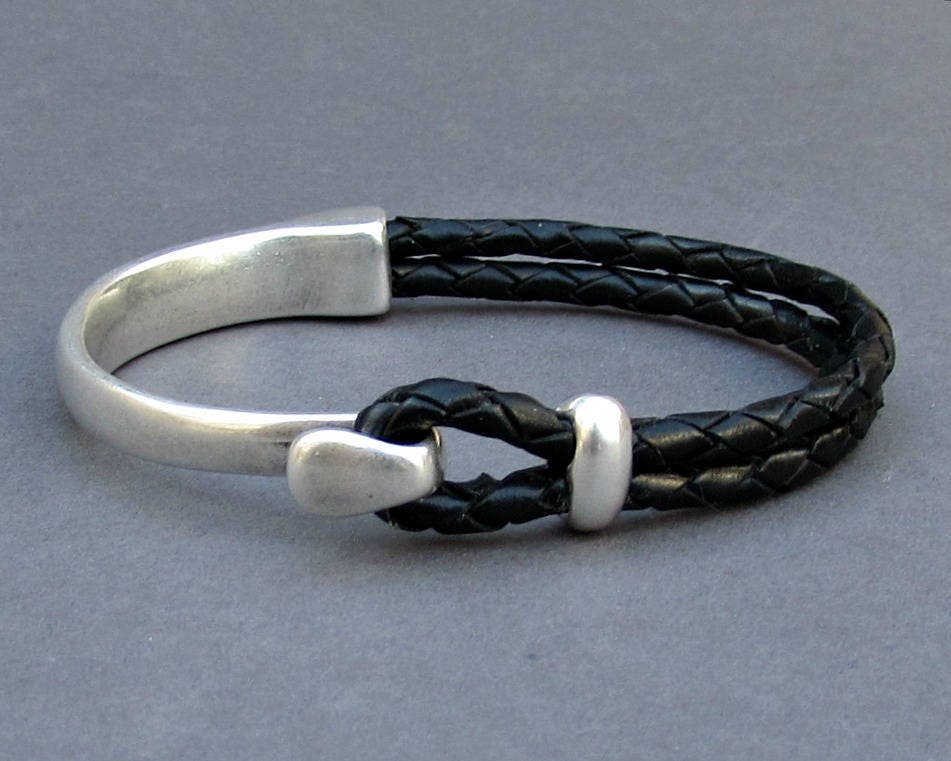 Ανδρικό Δερμάτινο Βραχιόλι Με Γάντζο Και Πλεκτό Δέρμα
