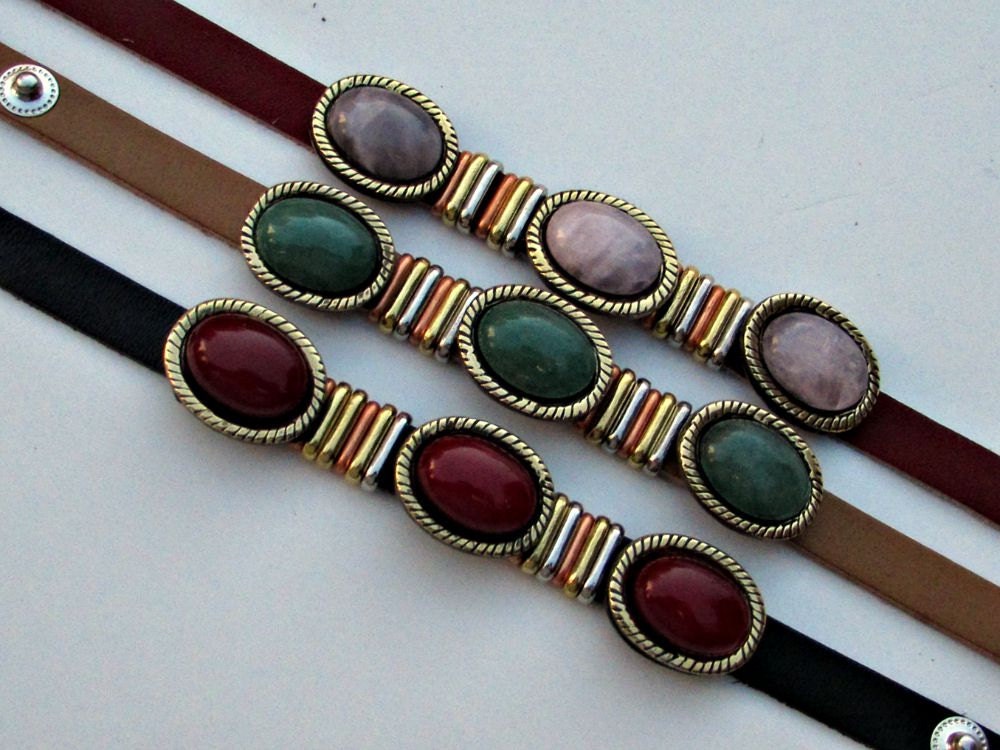 Βραχιόλι δερμάτινο για άνδρες φτιαγμένο από γνήσιο δέρμα, ημιπολύτιμες πέτρες και επάργυρο κράμα ψευδαργύρου.