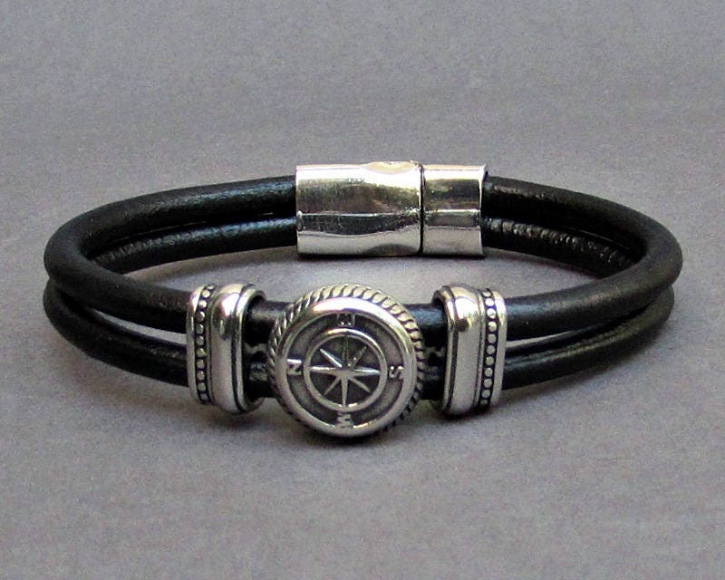 Βραχιόλι Ανδρικό Δερμάτινο Με Πυξίδα