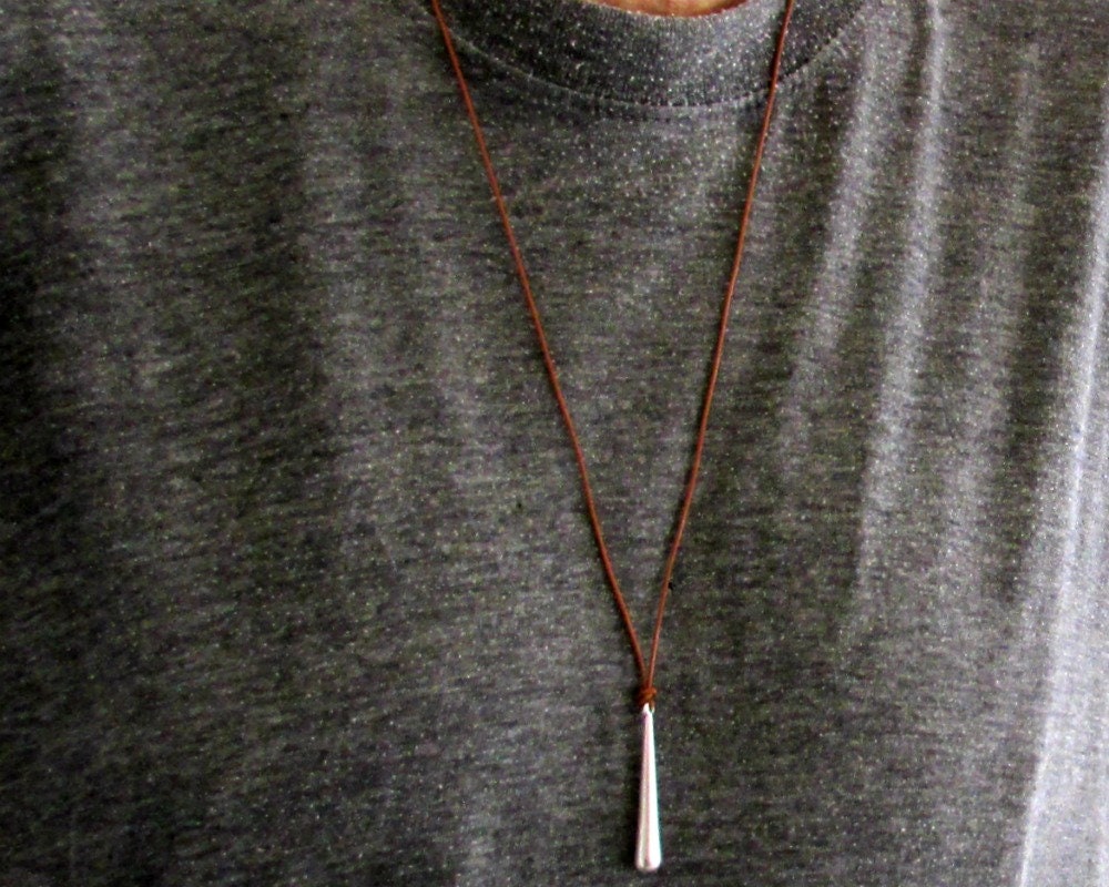 Ανδρικό κολιέ φτιαγμένο από γνήσιο δερμάτινο κορδόνι και ασήμι.