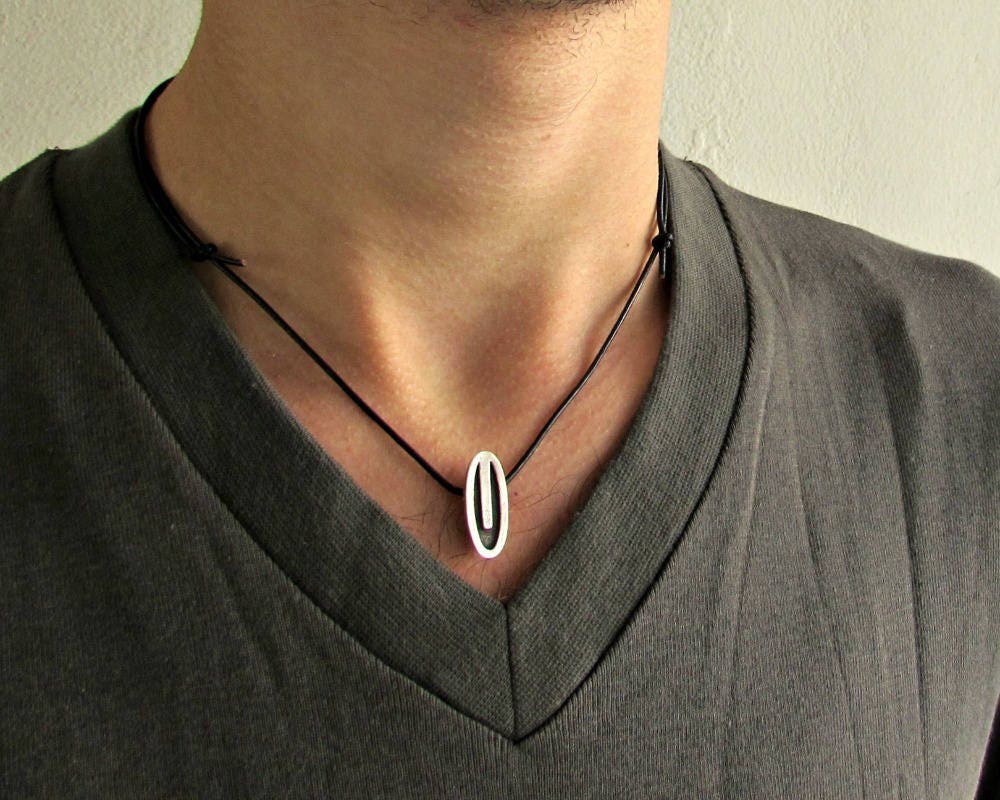 Ανδρικό κολιέ φτιαγμένο από γνήσιο δερμάτινο κορδόνι και επάργυρο κράμα ψευδαργύρου.