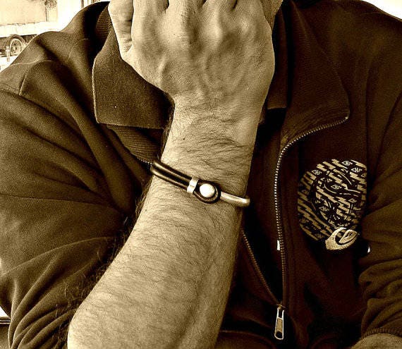 Βραχιόλι δερμάτινο για άνδρες φτιαγμένο απο γνήσιο δέρμα και επάργυρο κράμα ψευδαργύρου.
