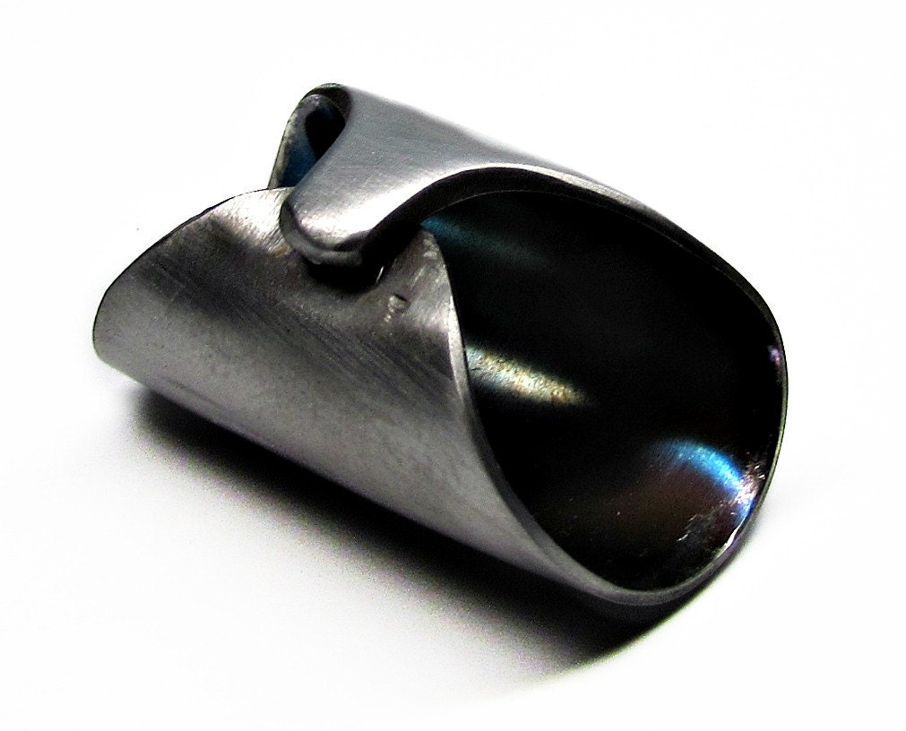 Αυτό το δαχτυλίδι είναι χειροποίητο από ένα πραγματικό κουτάλι από ανοξείδωτο χάλυβα. Προσέχω ιδιαίτερα να αποφεύγω γωνίες ή σημεία που μπορεί να κολλήσουν καθώς και στρώματα μετάλλου που μπορεί να ενοχλήσουν τα διπλανά δάχτυλα .