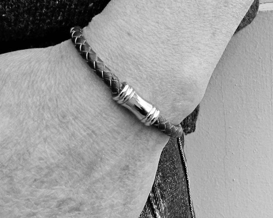 Ατσάλινο Βραχιόλι Με Πλεκτό Δέρμα.