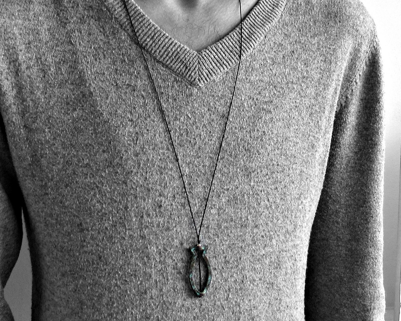 Ανδρικό κολιέ κρεμαστό φτιαγμένο απο επάργυρο κράμα ψευδαργύρου και γνήσιο δέρμα.