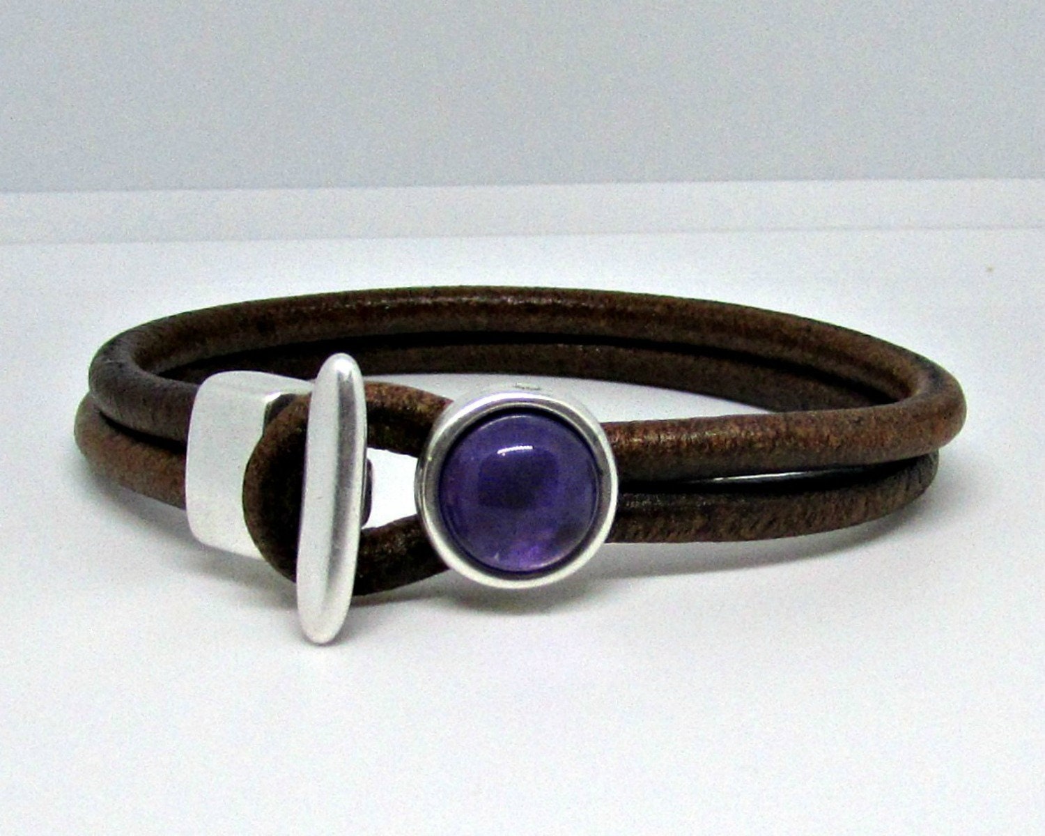 Amethyst Bracelet, Gemstone Mens Leather Bracelet Purple Amethyst Bracelet Boyfriend Gift Mens Jewelry customized to your wrist