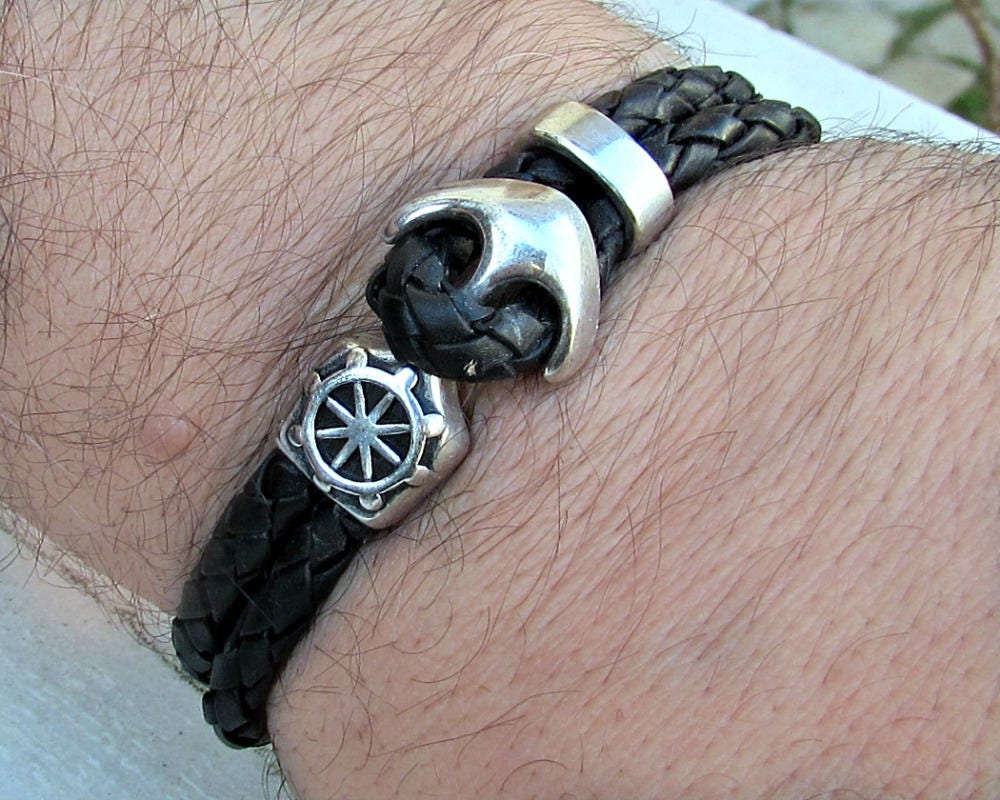 Ανδρικό Δερμάτινο Ναυτικό Βραχιόλι Με Άγκυρα