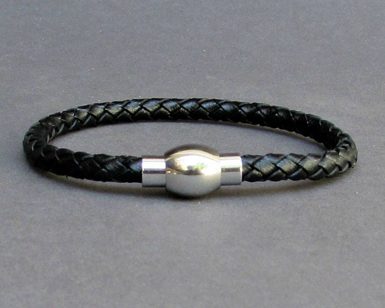 Here you can see a leather bracelet for men and women.I make the bracelet from genuine braided leather cord 5mm and Titanium Stainless Steel . All the materials i use are hypoallergenic